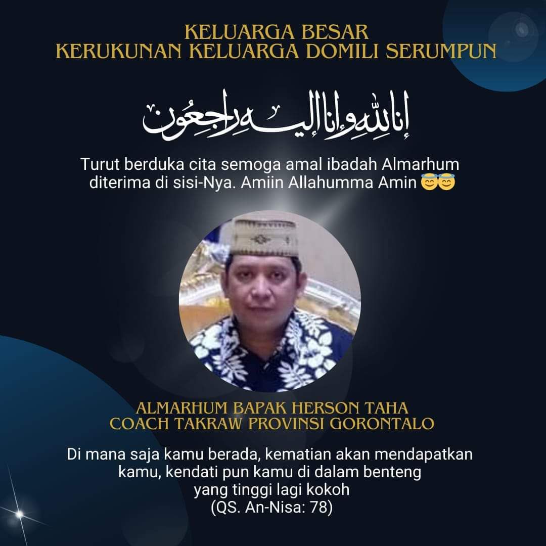 Pemerintah Kabupaten Aceh Timur menyampaikan rasa Turut berbelasungkawa atas berpulang kerahmatullah Harsono A Taha alias Herson Taha, pelatih cabang olahraga (Cabor) sepak takraw asal Gorontalo pada Pekan Olahraga Nasional (PON) XXI Aceh-Sumut. Sabtu, (14/9/2024).