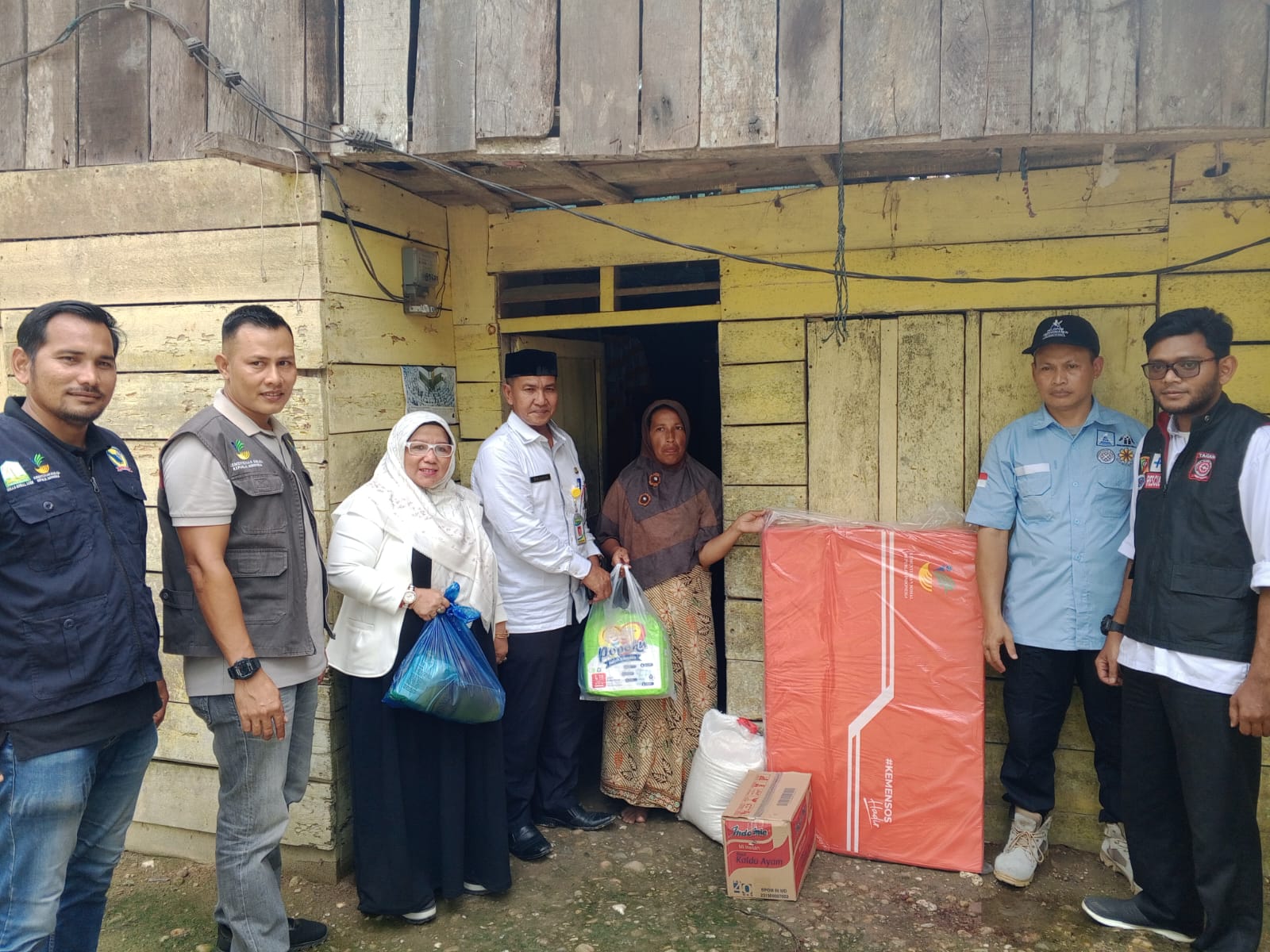 Dinas sosial Aceh Timur beserta personil Tagana memberikan bantuan Sembako kepada dua warga yang sudah lama menderita kelumpuhan sejak lama akibat adanya masalah syaraf ini, Diharapkan Bantuan sembako ini dapat meringankan beban hidup untuk pemenuhan kebutuhan sehari-hari .