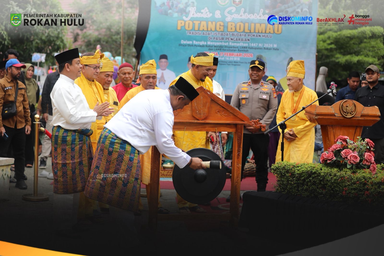Pemerintah Kabupaten Rokan Hulu (Rohul) bersama Lembaga Adat Melayu (LAMR) Rohul melaksanakan tradisi adat Potang Bolimau dalam rangka menyambut datangnya bulan suci Ramadhan 1447 Hijriah. Tradisi yang sarat nilai religius dan budaya ini berlangsung khidmat dan meriah, Pujasera Batang Lubuh Pasir Pengaraian, Selasa (17/02/2026).